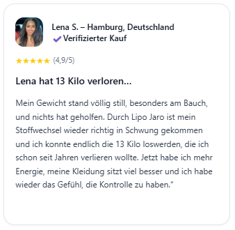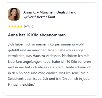Für nachhaltige und beständige Ergebnisse empfehlen wir, Lipo Jaro mindestens 6 Monate lang anzuwenden. Das ist genau die Zeit, die der Körper benötigt, um das hormonelle Gleichgewicht vollständig wiederherzustellen und den Stoffwechsel-Reset zu festigen.