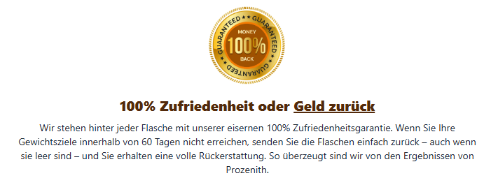 Sollten Sie aus irgendeinem Grund nicht vollkommen zufrieden sein – selbst wenn Sie bereits alle Flaschen aufgebraucht haben – senden Sie diese einfach zurück. Sie erhalten 100 % Ihres Geldes zurück, ganz ohne Fragen.